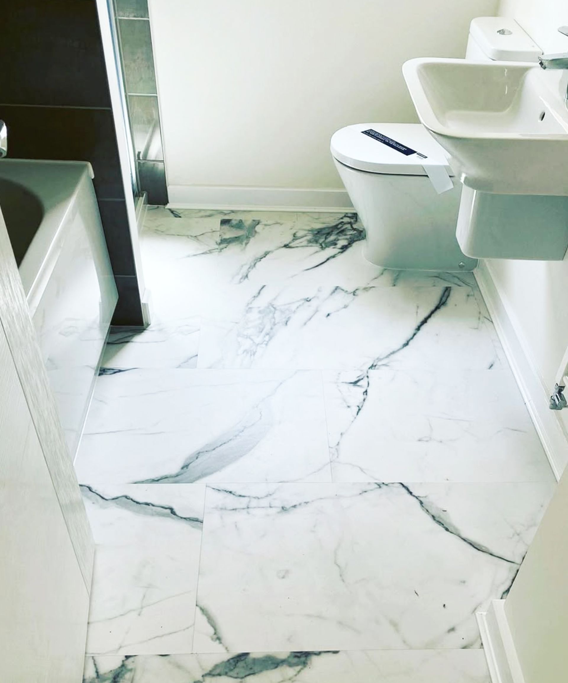Ply boarded this bathroom floor, and then fitted marble LVT